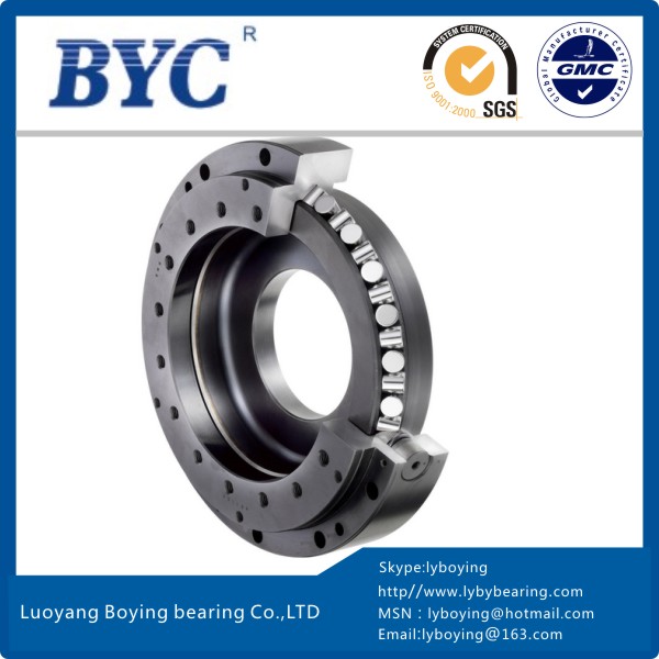 Product FeaturesBYC Crossed roller bearings are lightweight, compact bearings with thinnest possible inner and outer rings with high rigidity, because of its vertical arrangement of cylindrical rollers with a 90°V groove through the separate spacers in the deep groove rolling surface. This special design allows just one bearing to carry loads in all directions including radial, axial and moment loads.