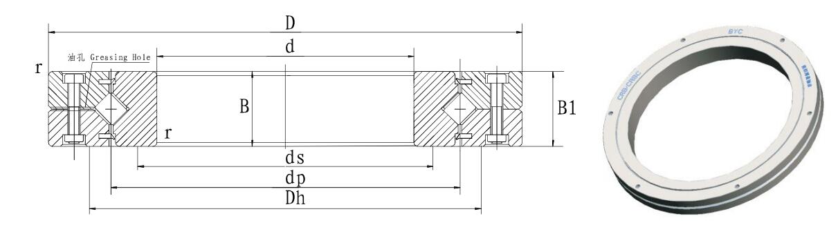 | Product Features | BYC Crossed roller bearings are lightweight, compact bearings with thinnest possible inner and outer rings with high rigidity, because of its vertical arrangement of cylindrical rollers with a 90°V groove through the separate spacers in the deep groove rolling surface. This special design allows just one bearing to carry loads in all directions including radial, axial and moment loads. | ||||||||||