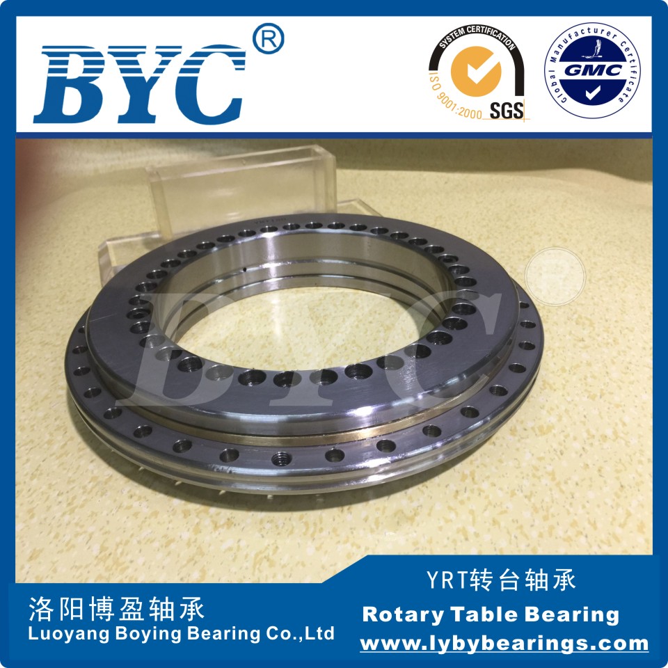 Product FeaturesYRT bearings (rotary table bearings) are axial and radial combined cylindrical roller bearings, including two thrust needle roller bearings and a radial cylindrical roller bearing with the combination of axial and radial p reload, For the convenience of transportation and fixing, two or three symmetrical screws are fastened to the two rings in order to prevent rollers and rings generating collisions which influence bearing accuracy.